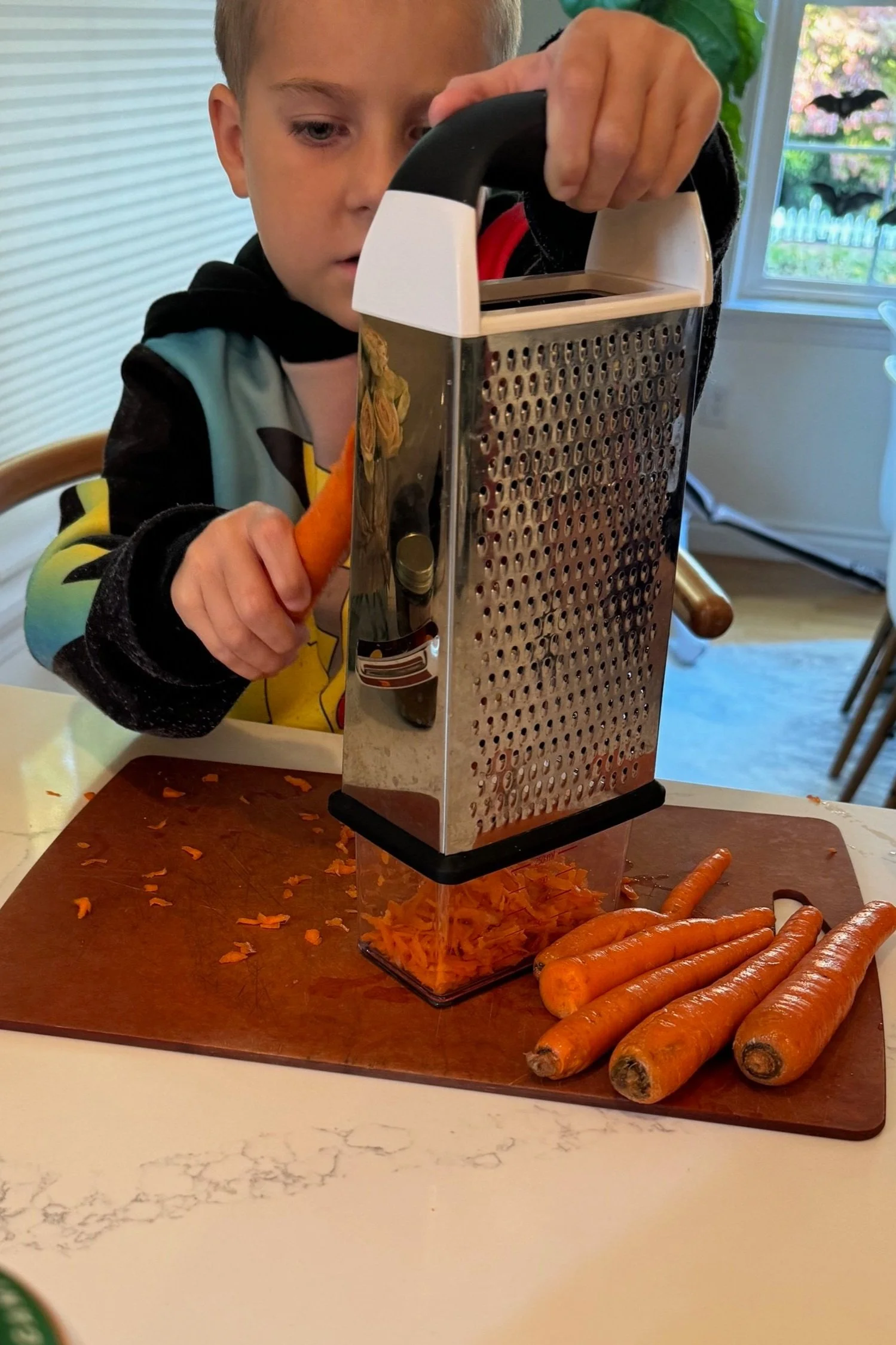Add wet to dry ingredients, mix, then stir in carrots and raisins (optional) or other mix-ins like nuts or dark chocolate chips. Spoon/scoop into 2" round cookies on sheet, bake for 15 min and let cool. Store on the counter for up to 2 days or in fridge for a week - I also like to freeze some if I make a big batch!